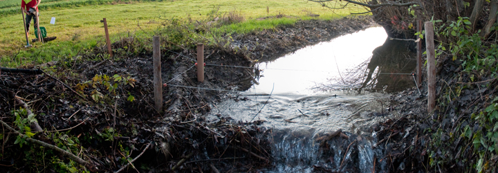 La tension ne doit pas dépasser 2000-4000 volt et l’énergie du courant 0,5 joule. Dans la plupart des cas, le castor ne reconstruit plus rien pendant une période plus longue s’il est entré en contact avec une clôture électrique. On peut donc retirer la clôture après deux à trois semaines et continuer à observer la situation. Par contre, si le castor recommence la construction du barrage, on peut répéter la mesure.