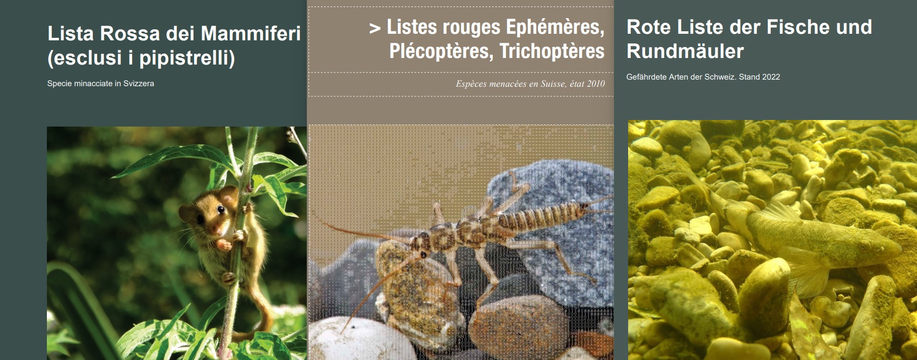 - Information : Les listes rouges informent sur l'état et de l'évolution des espèces et des milieux naturels. Elles fournissent également des données pour les listes rouges de l'UICN (Union Internationale pour la Conservation de la Nature). Elles servent de base pour le plan suisse de conservation des espèces et de protection des milieux naturels.