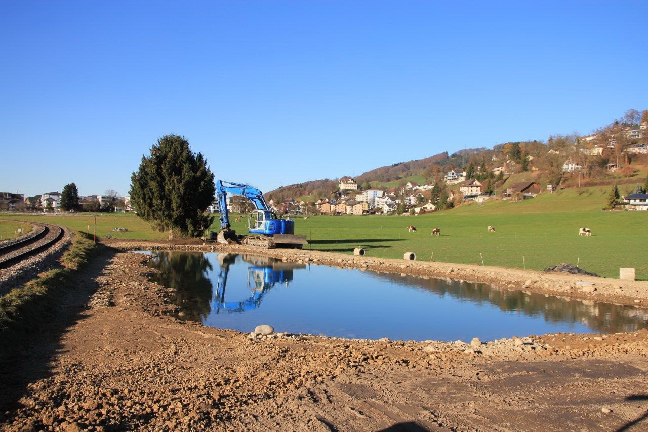 Bei der Erfolgskontrolle im Jahr 2022 konnten in den neu erstellten Gewässern schon sechs verschiedene Amphibienarten nachgewiesen werden, inklusive der gefährdeten Gelbbauchunke. Der Kammmolch konnte die Gewässer noch nicht besiedeln, das war aber in dieser kurzen Zeit auch nicht zu erwarten. Die Gewässer sind konkret auf die Bedürfnisse der Art ausgerichtet und eine zukünftige Besiedlung ist gut denkbar. Die Kammmolchförderung auf dem Thurgauer Seerücken wird nach Projektabschluss durch das Thurgauer Forstamt weitergeführt.
