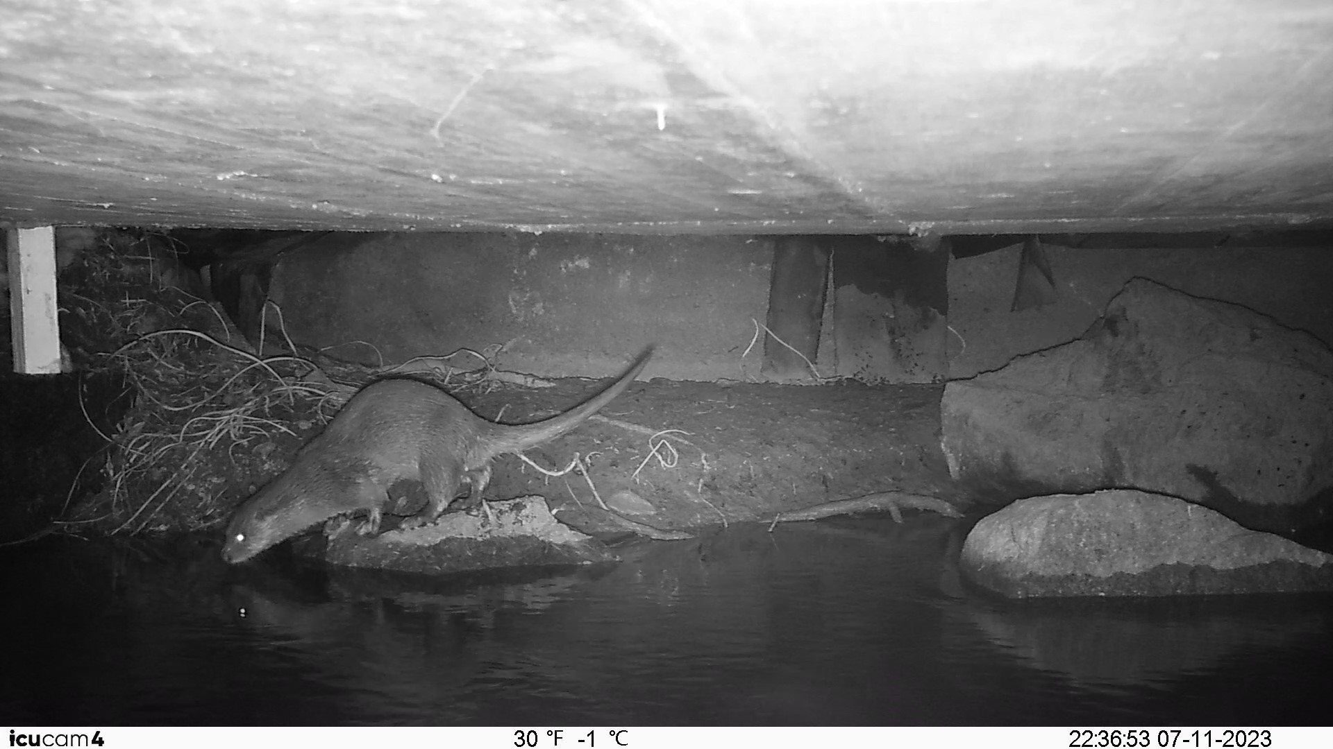 Les loutres aiment utiliser les structures semblables à des grottes sous les ponts pour marquer leur territoire (© Office de la chasse et de la pêche des Grisons).